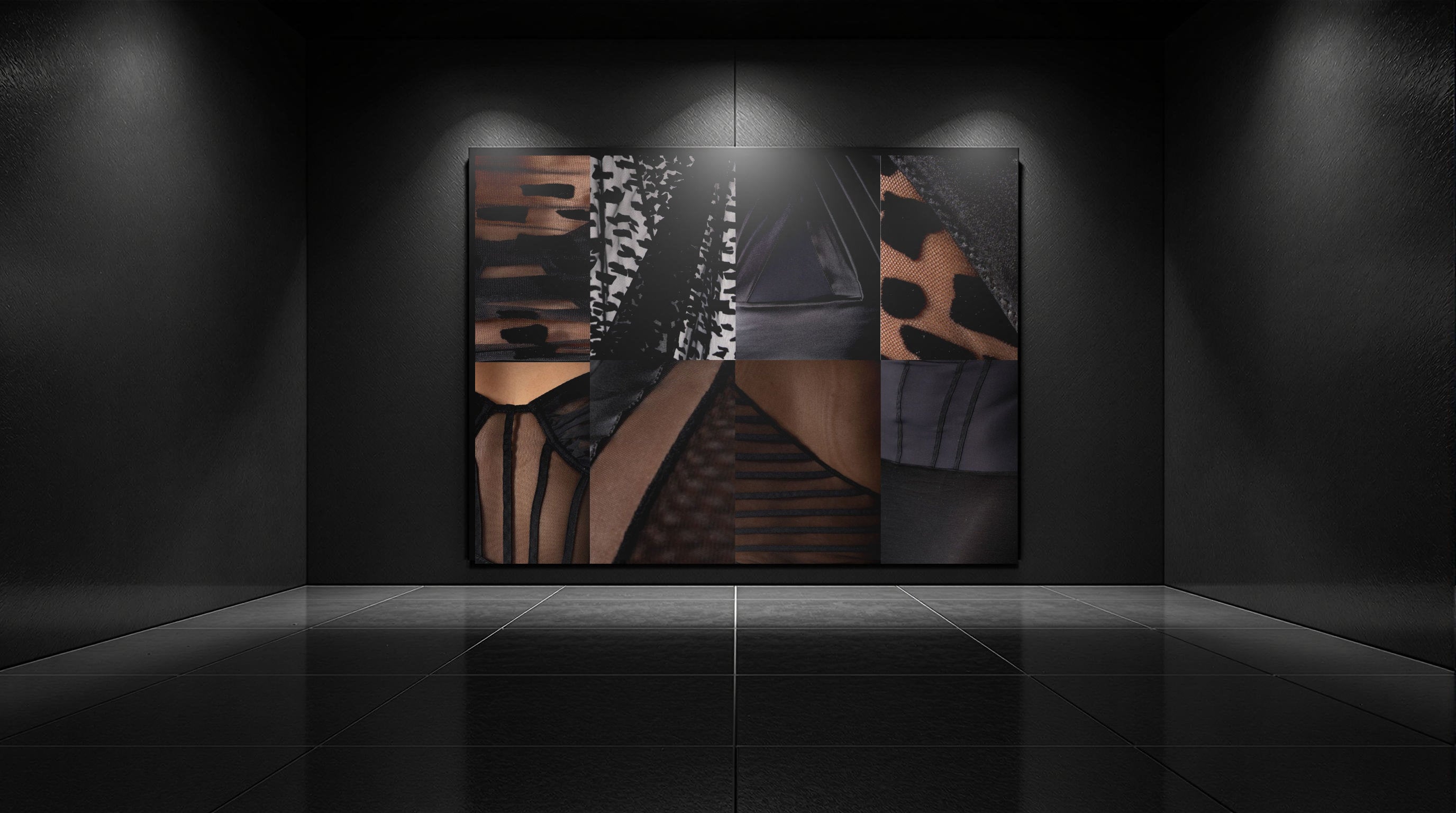 Welcome to the Lumey Paris boutique, a space inspired by the great masters of black. This textile work pays tribute to the richness of black in all its shades: matte, glossy, transparent, flocked, striped.